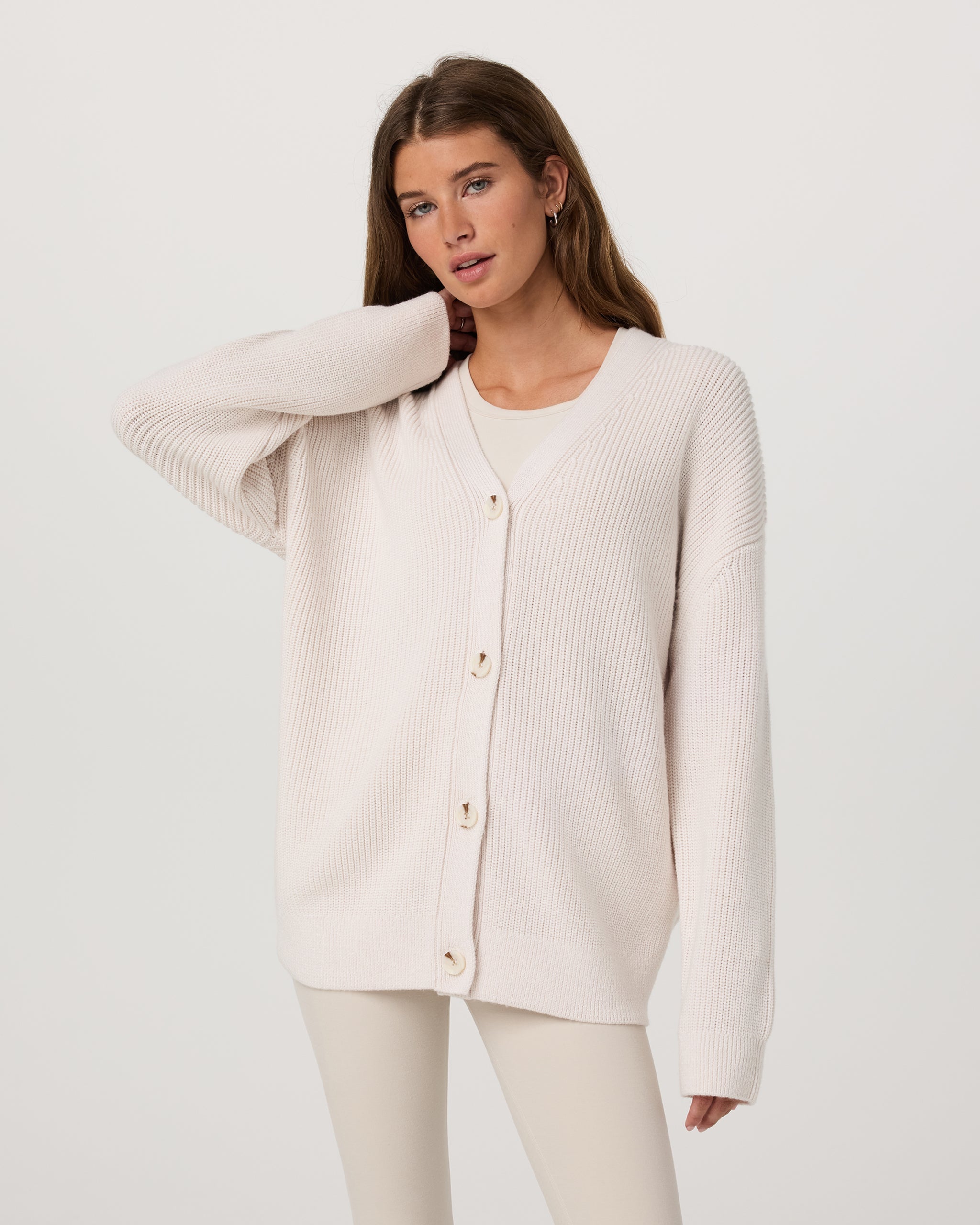 A new arrival yet already a favorite, it’s the Alps Boyfriend Cardigan. Made with a cozy wool blend from 55% Woolmark-Certified Merino Wool, this dreamy women's layering piece features an oversized fit borrowed from the boys and a front button closure.