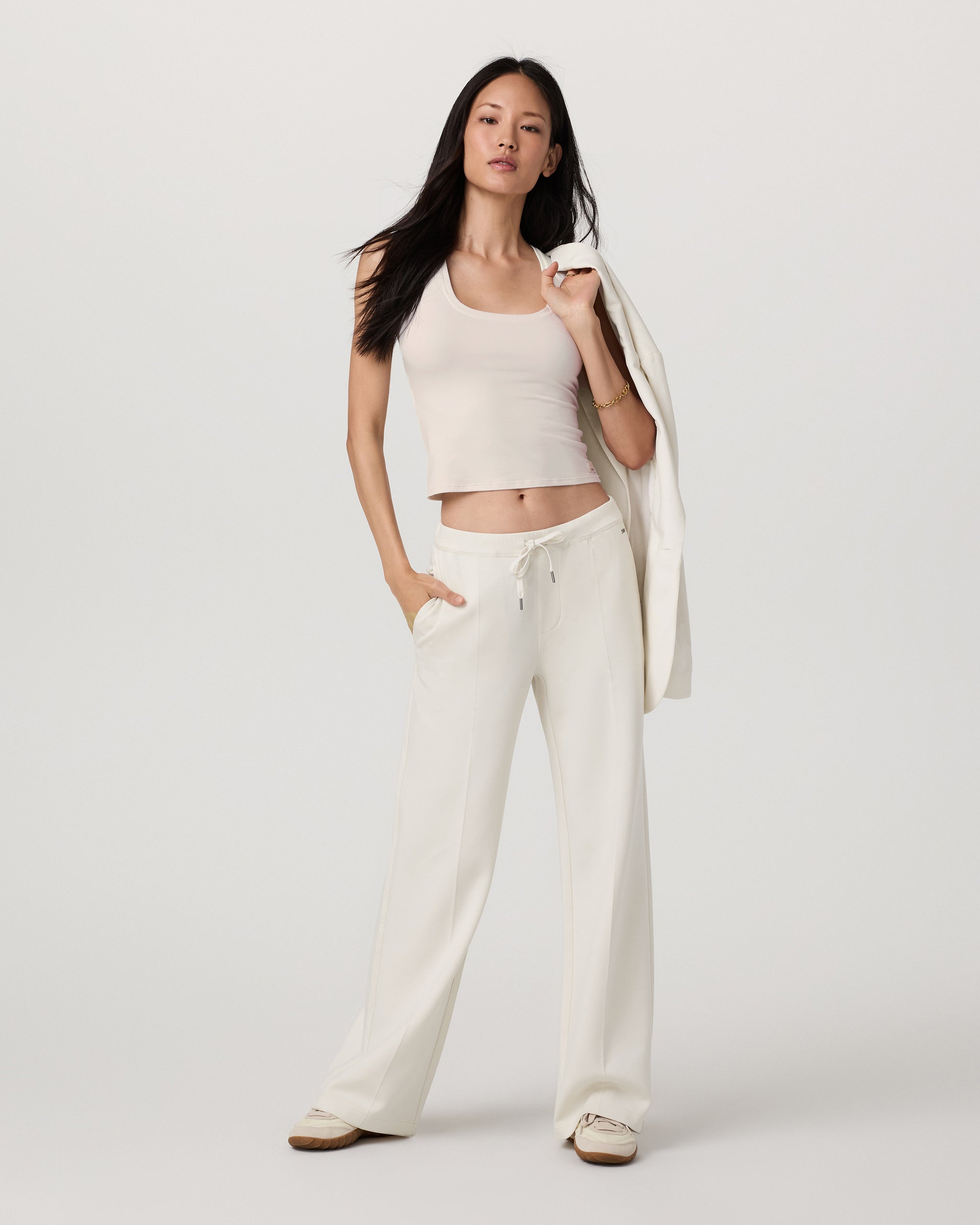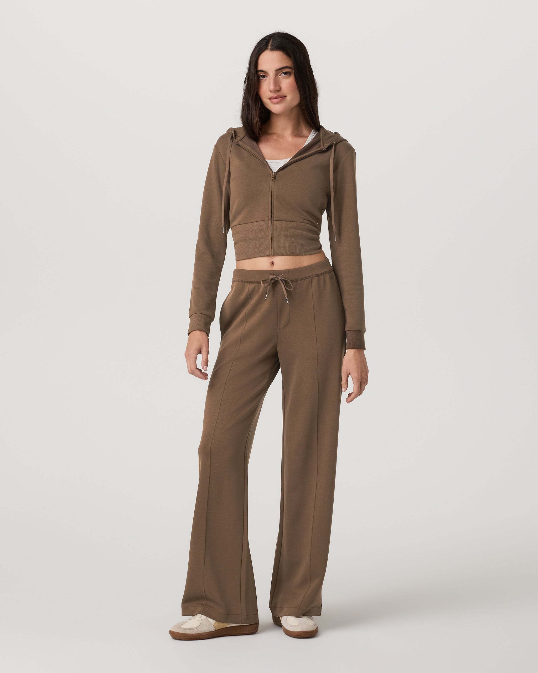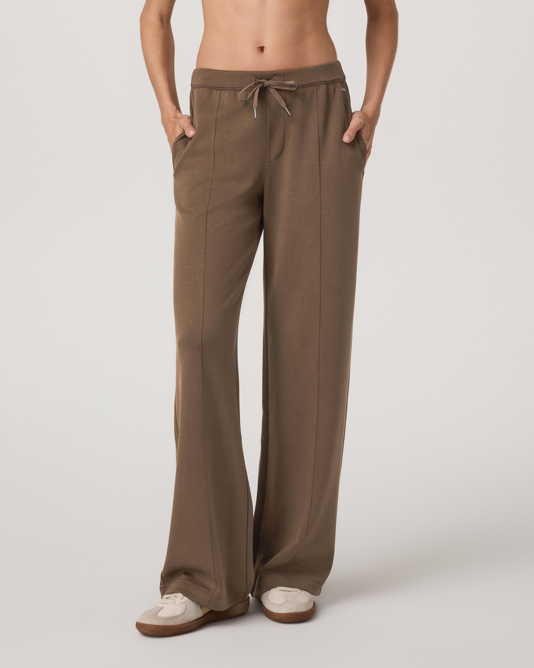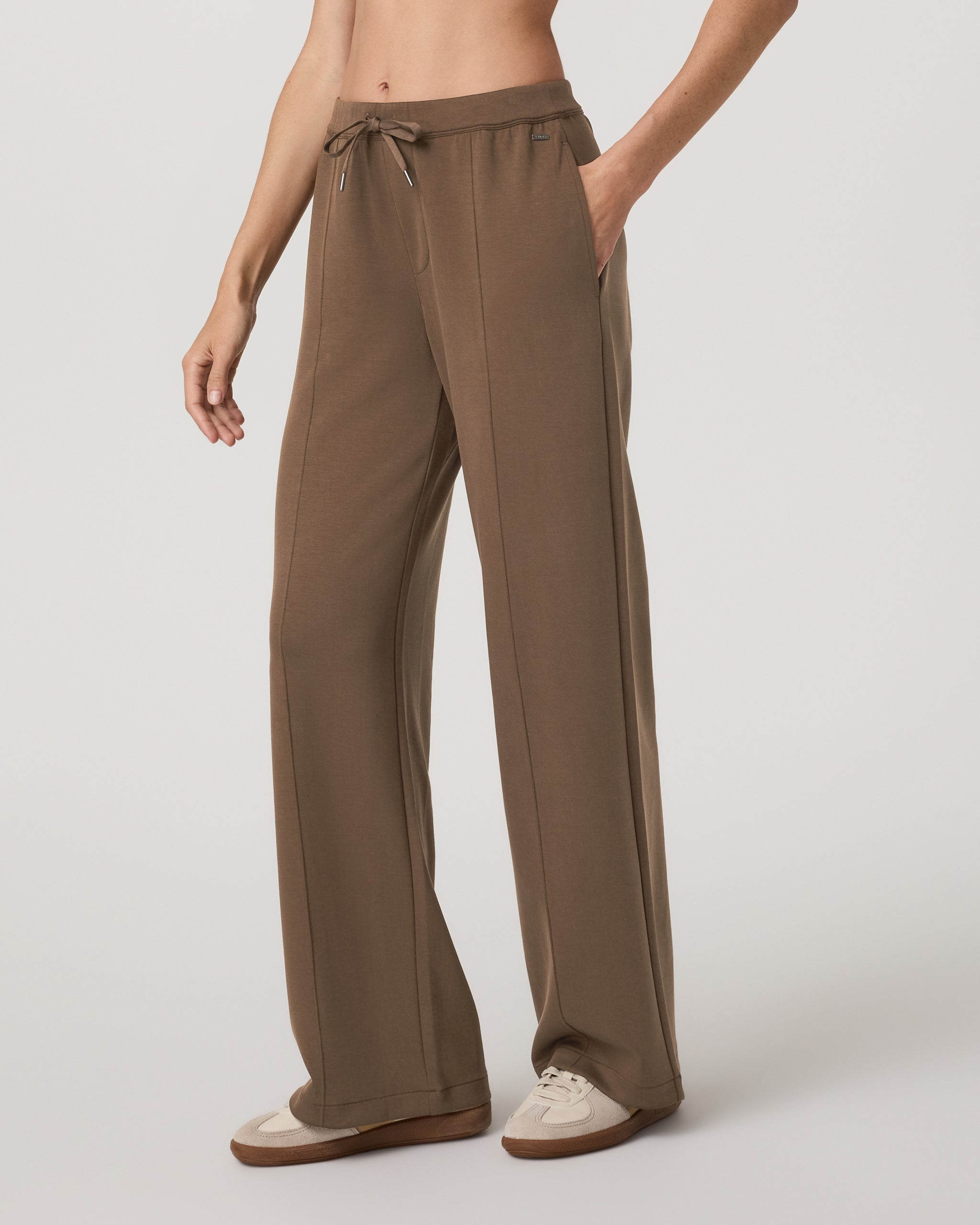 Elevated in comfort and style, the Compose Wideleg Pant is a relaxed bottom made with our sandwash, spacer knit interlock fabric. These soft-on-the-skin pants feature elegant pintuck details, a comfortable elastic waistband, and a mid-high rise that you can dress up or down. Designed to mimic your favorite vintage pant, the fabric color naturally softens over time for a lived-in, well worn look.