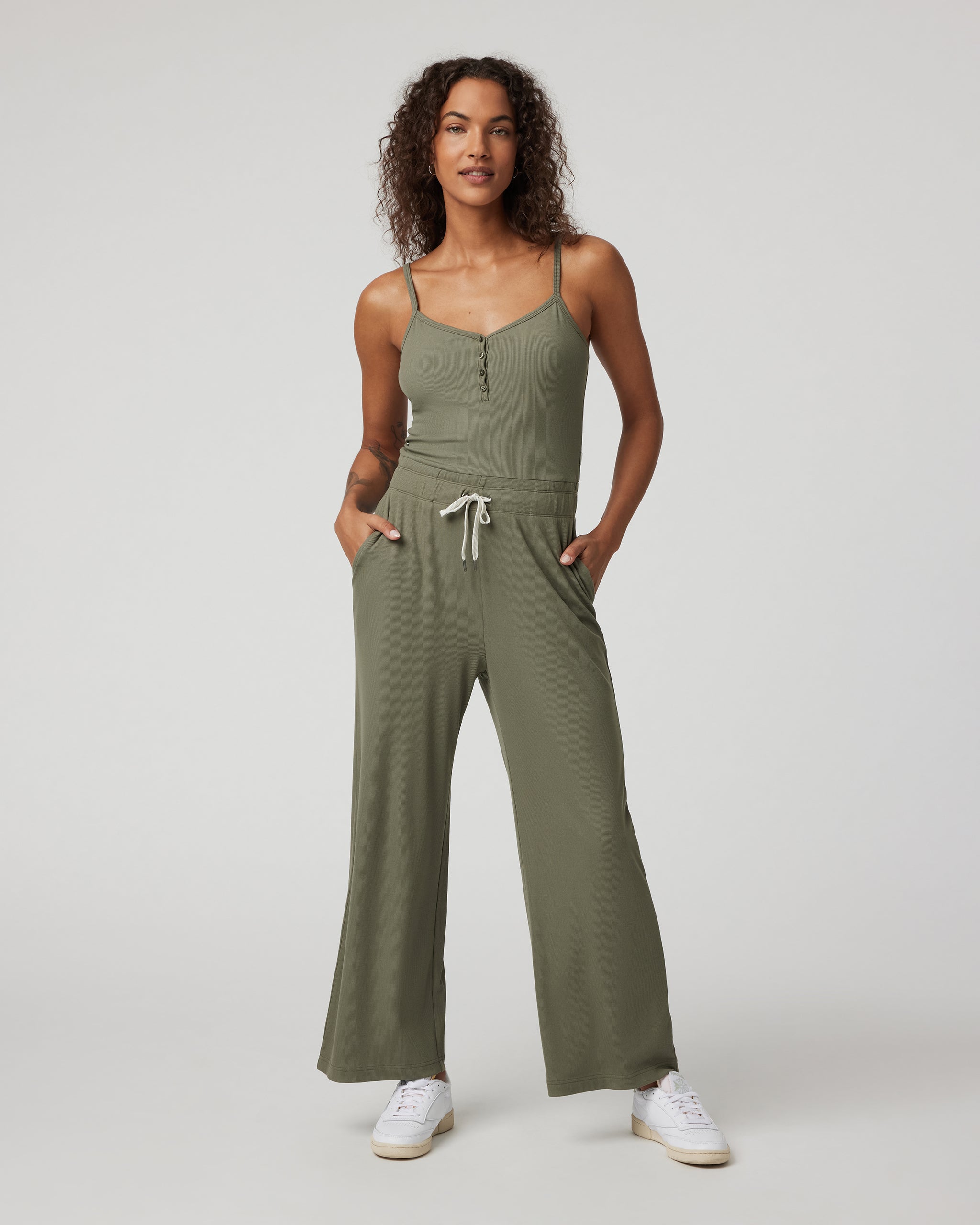 Weekends, travel days and low-key brunches are the perfect opportunity for the Pose Henley Jumpsuit. Made with our moisture-wicking stretch rib knit, this full-length jumpsuit has a built-in shelf bra and on-seam side pockets.