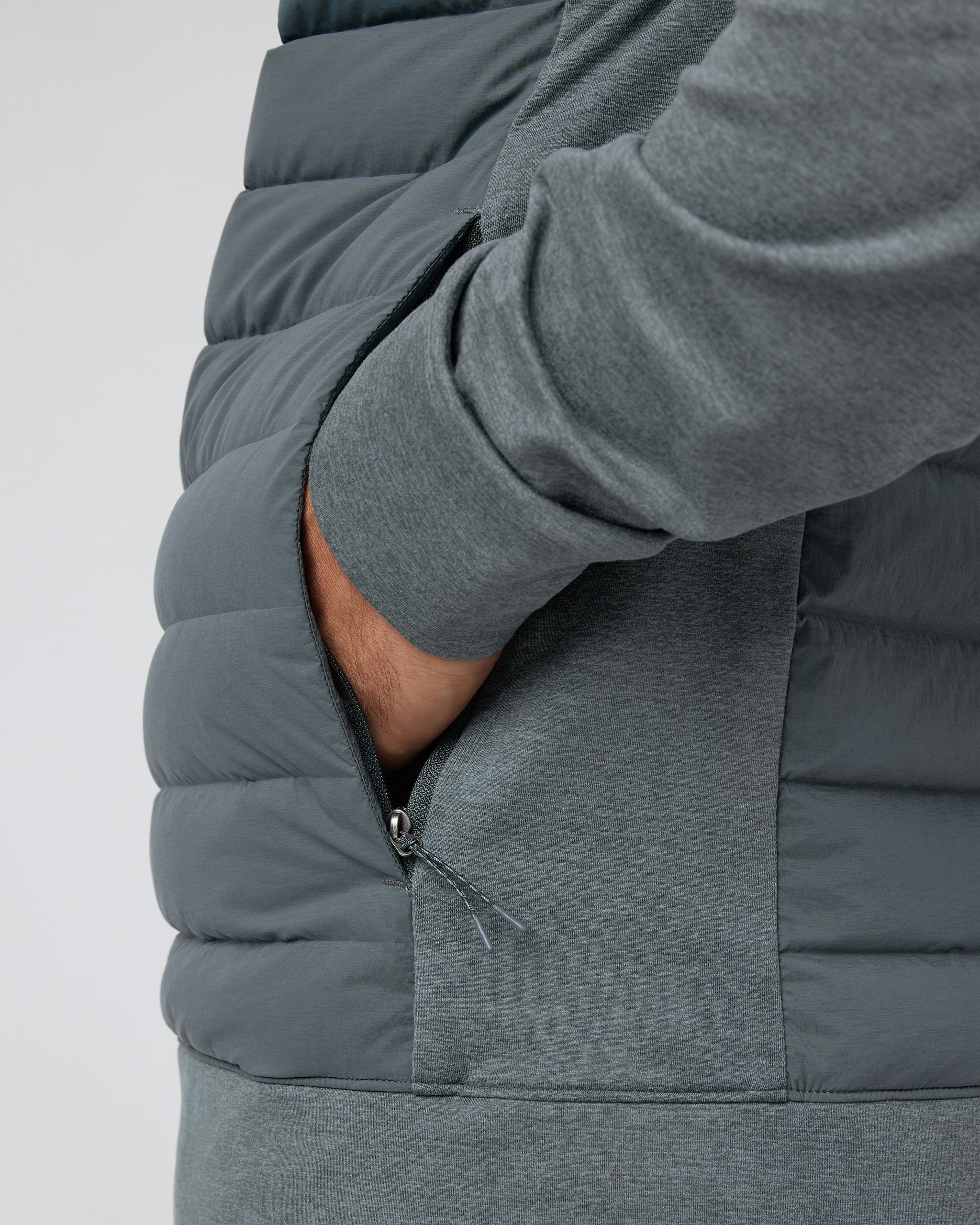 This hybrid jacket features 600-fill Responsible Down Standard (RDS) insulation, and a knit hood and sleeves that keep your core warm and your body mobile. Finished with side zip pockets and a weather-resistant, durable water-repellent finish.